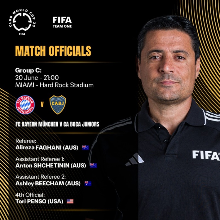 6月19日讯 FIFA官方公布世俱杯(当地时间)20日四场比赛裁判安排,马宁为弗拉门戈vs切尔西一役第四官员,法加尼执法拜仁vs博卡。